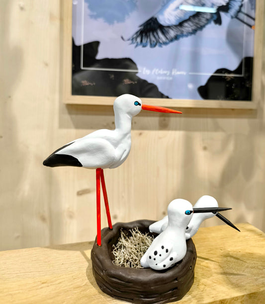 AVOCETTE ELEGANTE AVEC SES DEUX PETITS -Figurine