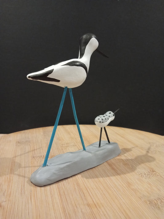 AVOCETTE ELEGANTE AVEC SON PETIT - Figurine