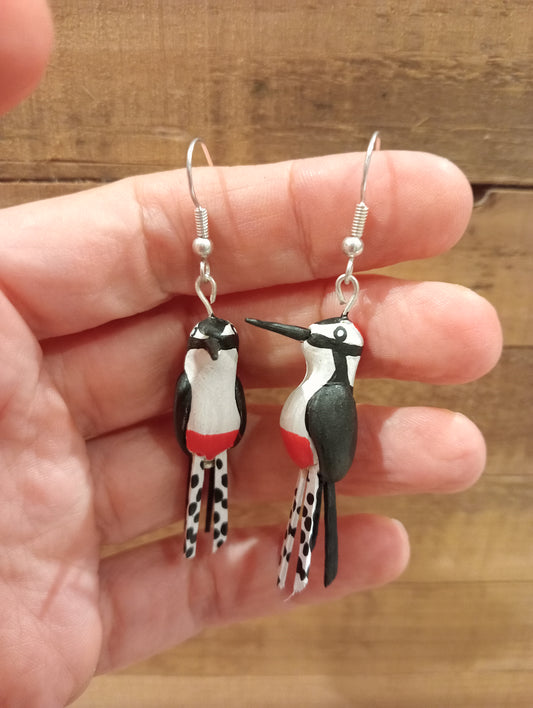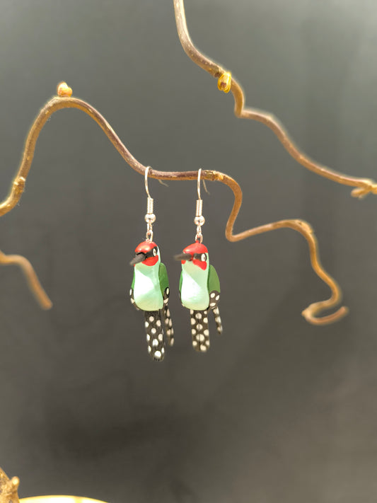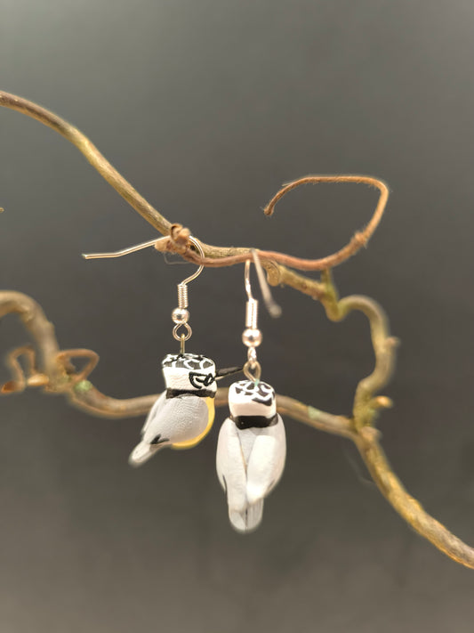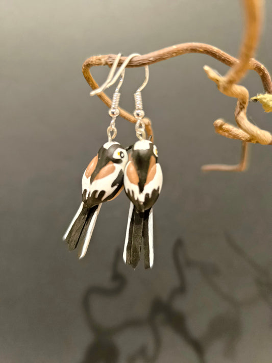 Boucles d'oreilles oiseaux modelées et peintes à la main, pour mettre une touche de nature et de poésie à vos oreilles!