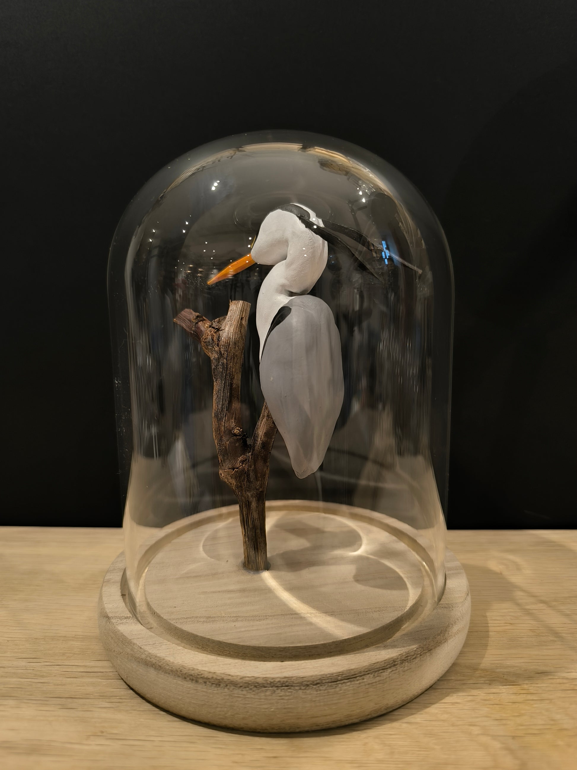 GREY HERON under a glass bell jar, "curiosity cabinet" style
