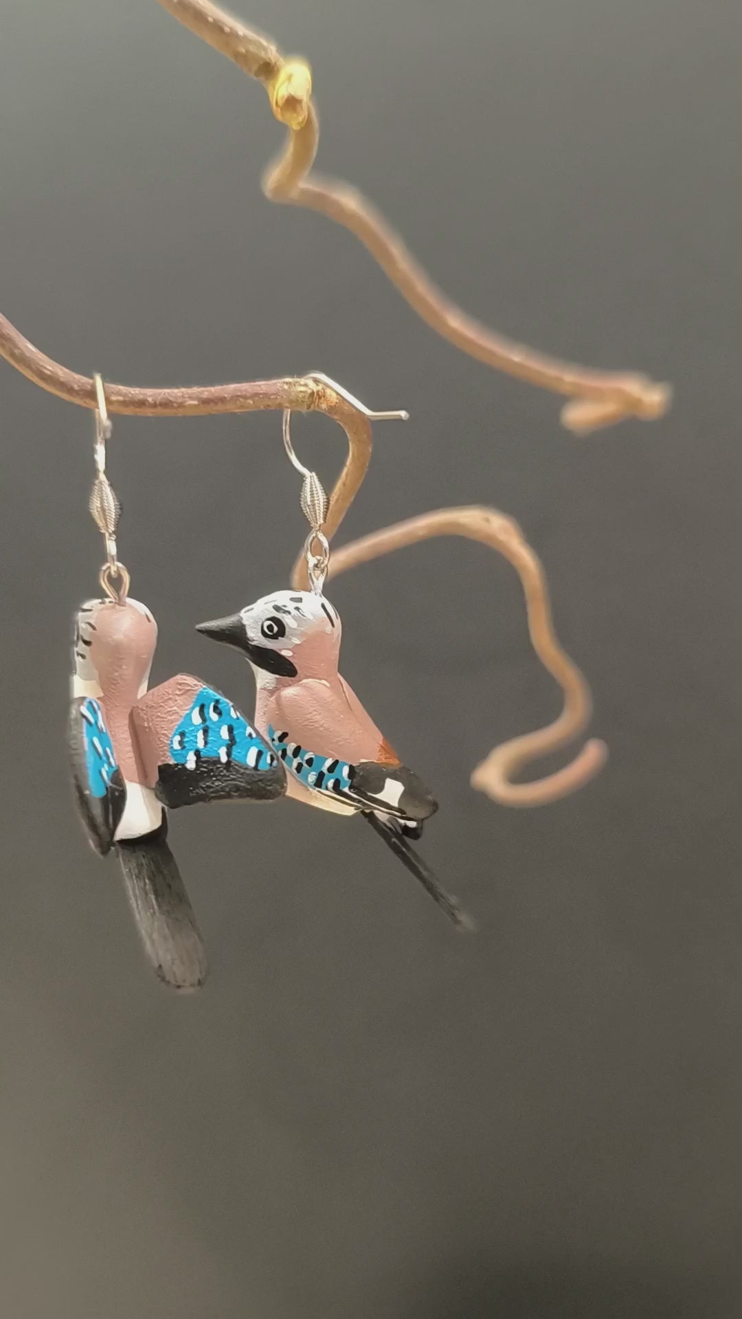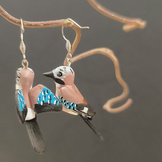 GEAI DES CHENES- Boucles d'oreilles oiseaux asymétriques