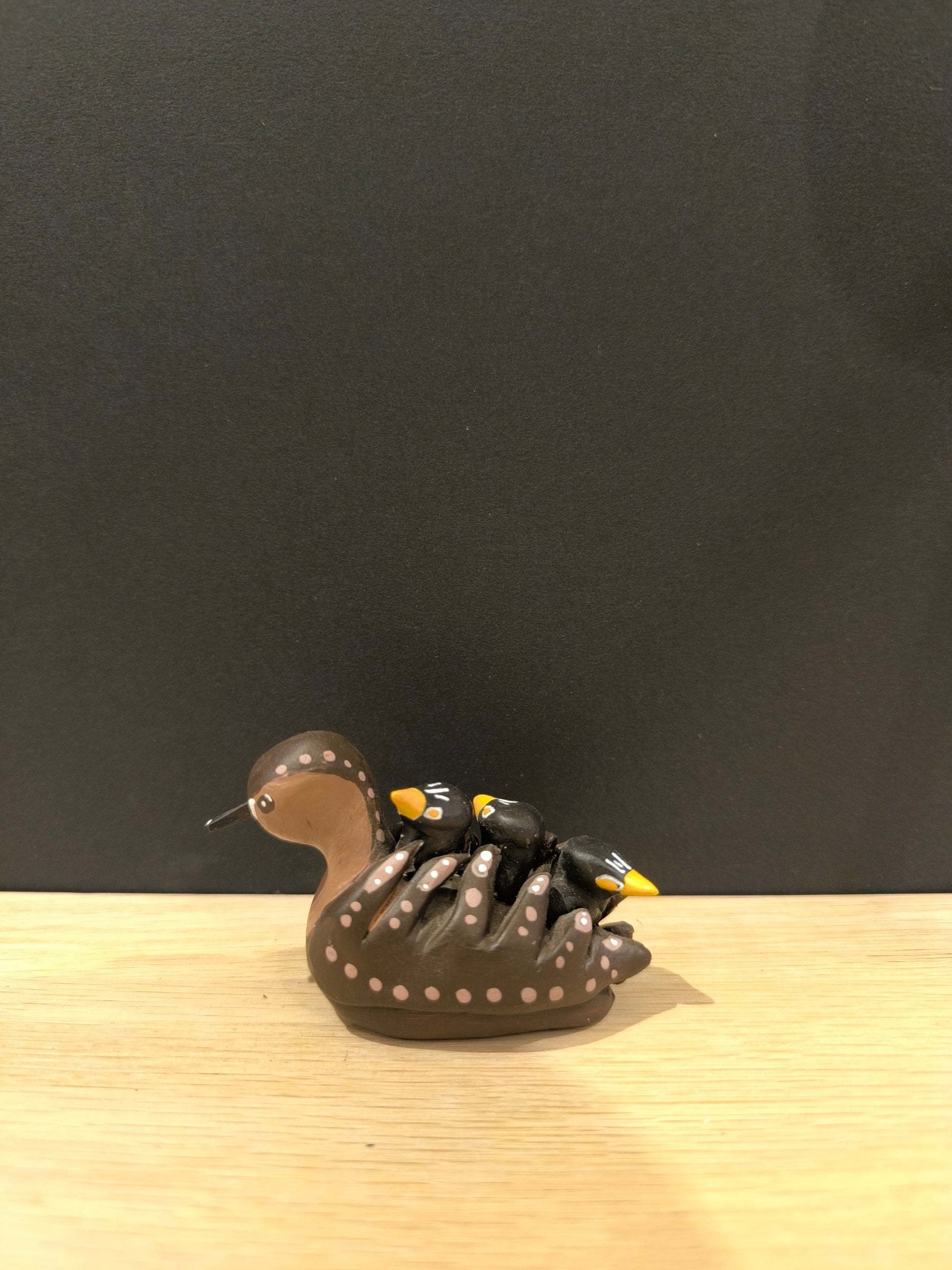 Modeling in self-hardening clay. Modeled and painted by hand.
