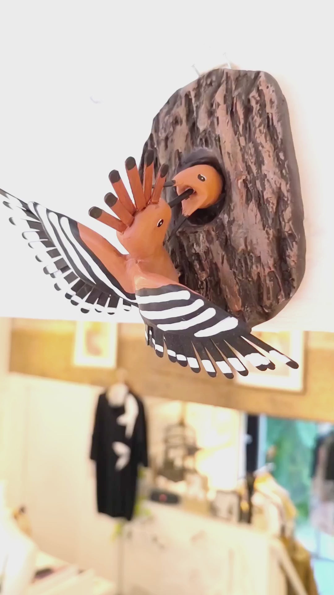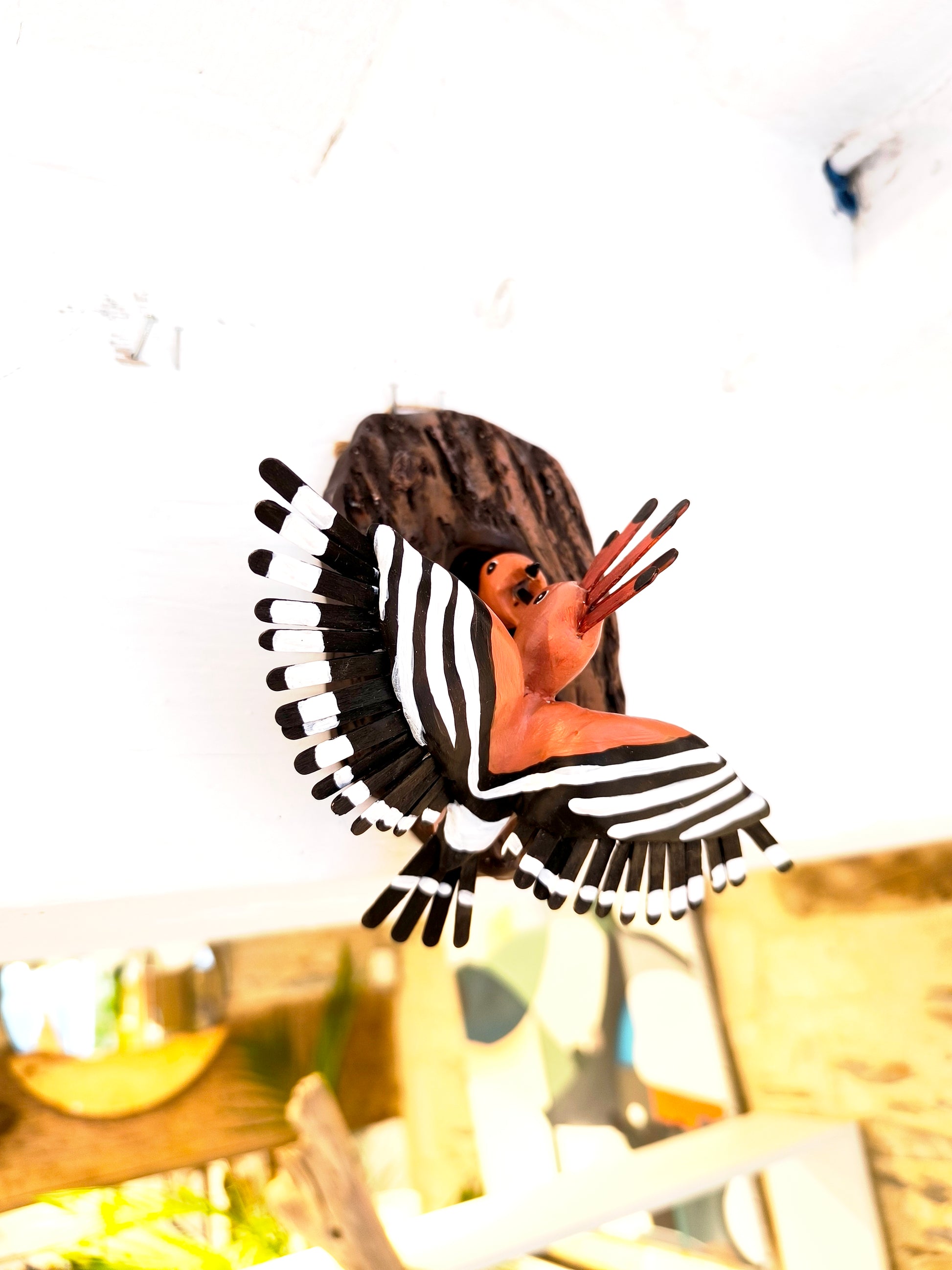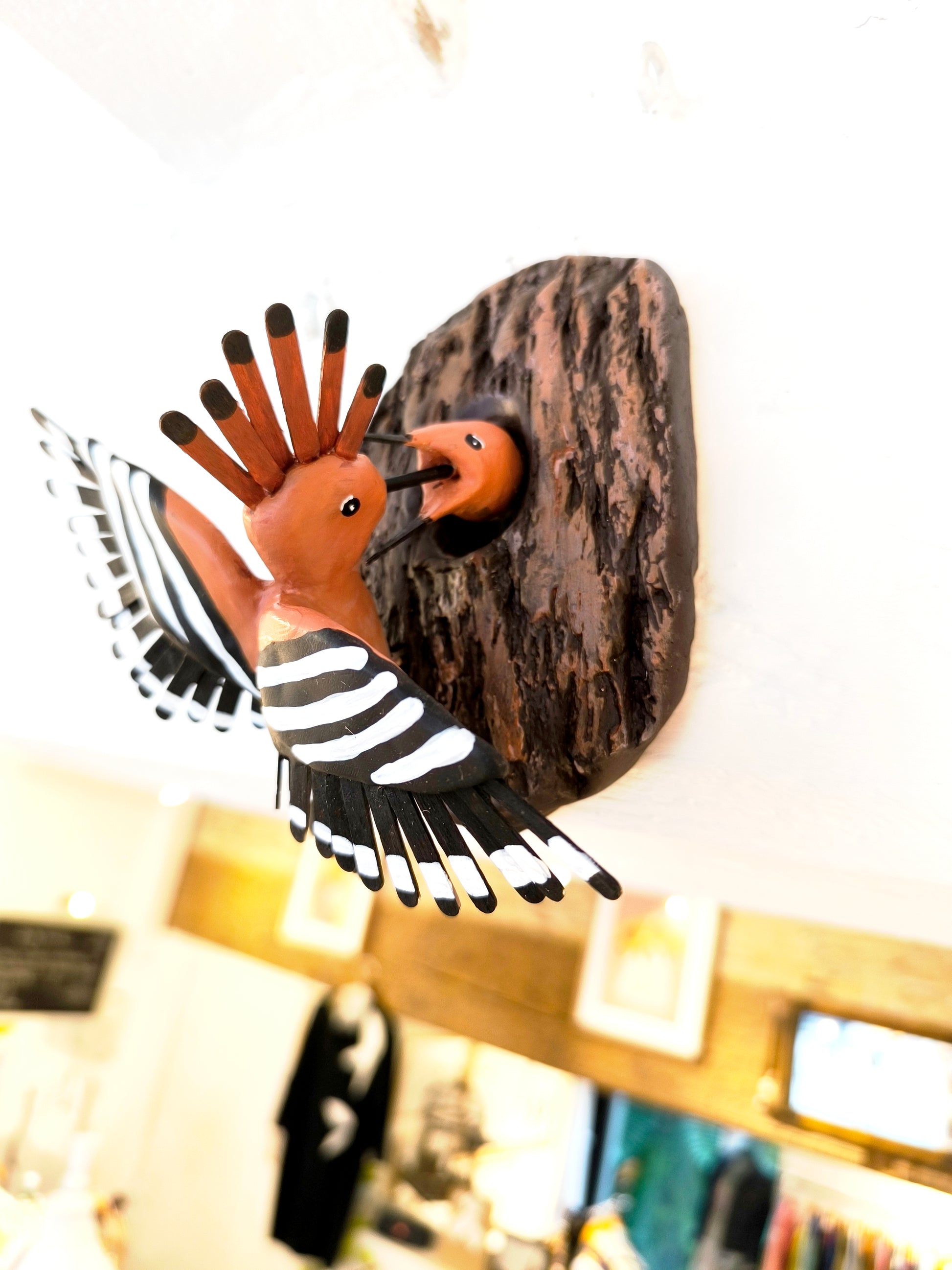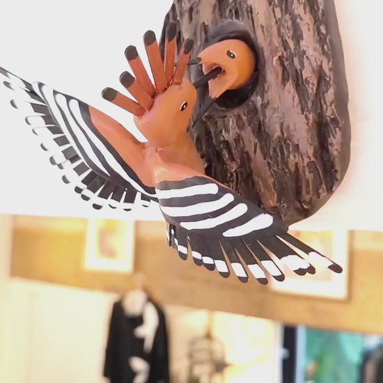 Nid de Huppe fasciée modelé et peint à la main en argile naturelle autodurcissante et en bois .