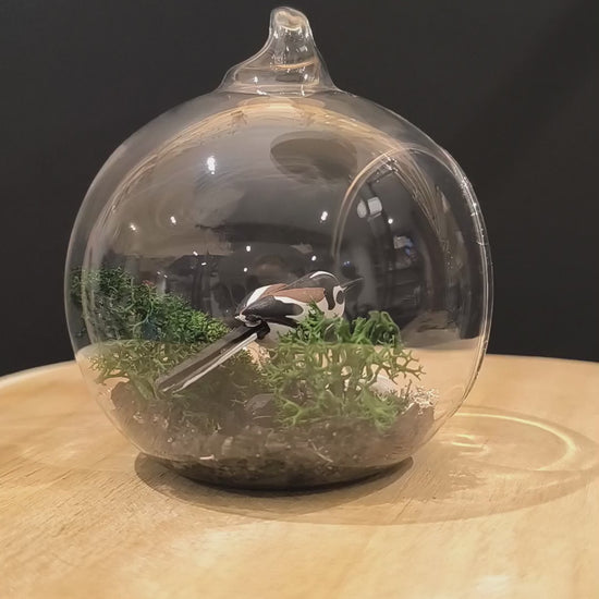 Bulle de rêve Orite à longue queue dans petit décor naturel.