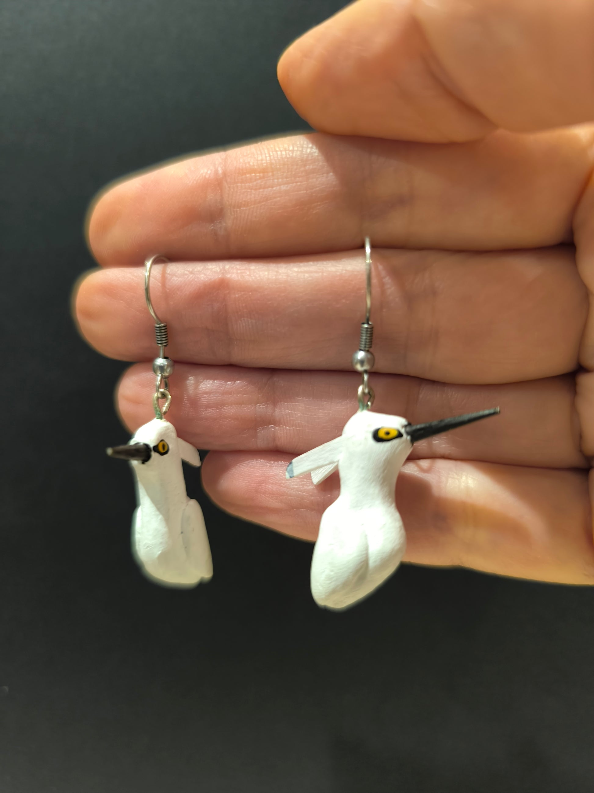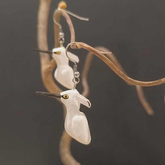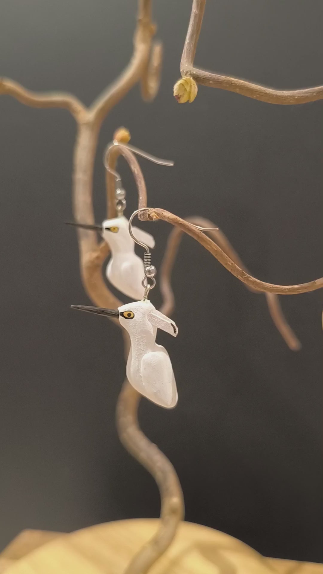 Boucles d'oreilles oiseaux Aigrette garzette modelées et peintes à la main....Pour mettre une touche de nature et de poésie à vos oreilles!