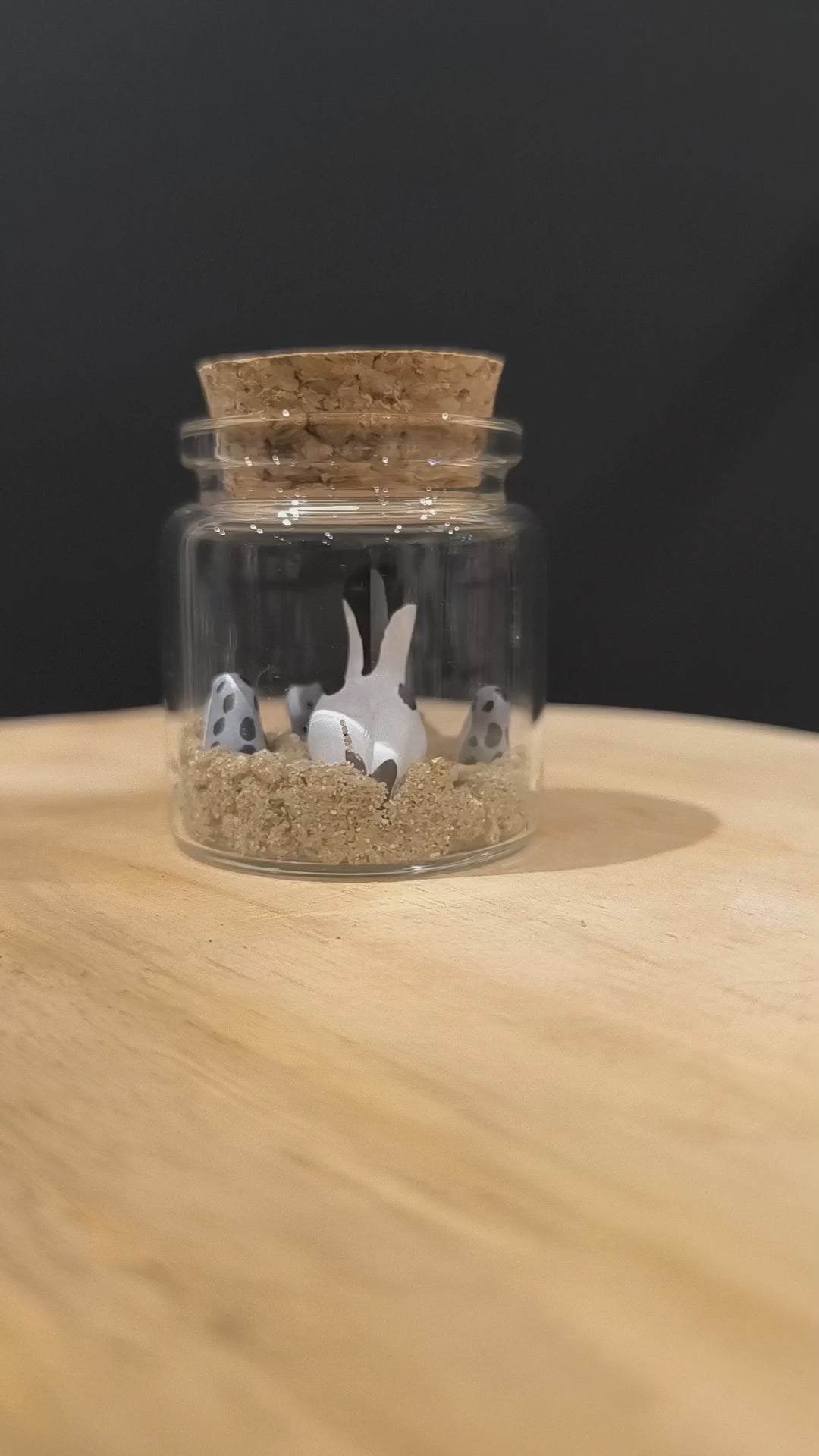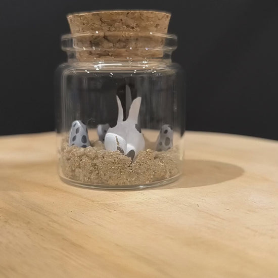 Avocette élégantes et ses petits miniatures dans petit flacon avec micro décor naturel.