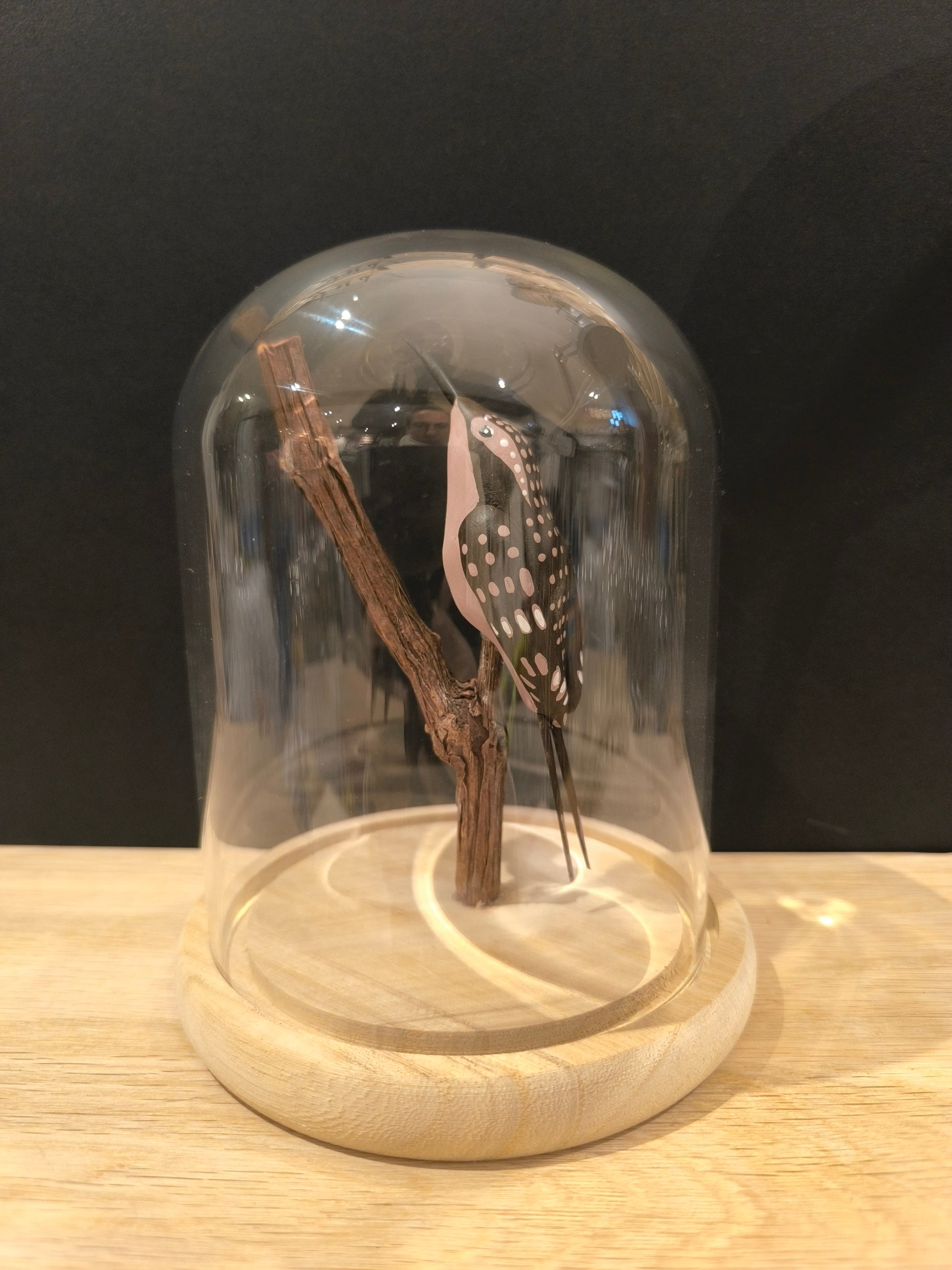 GRIMPEREAU DES JARDINS sous cloche de verre façon "Cabinet de curiosté"