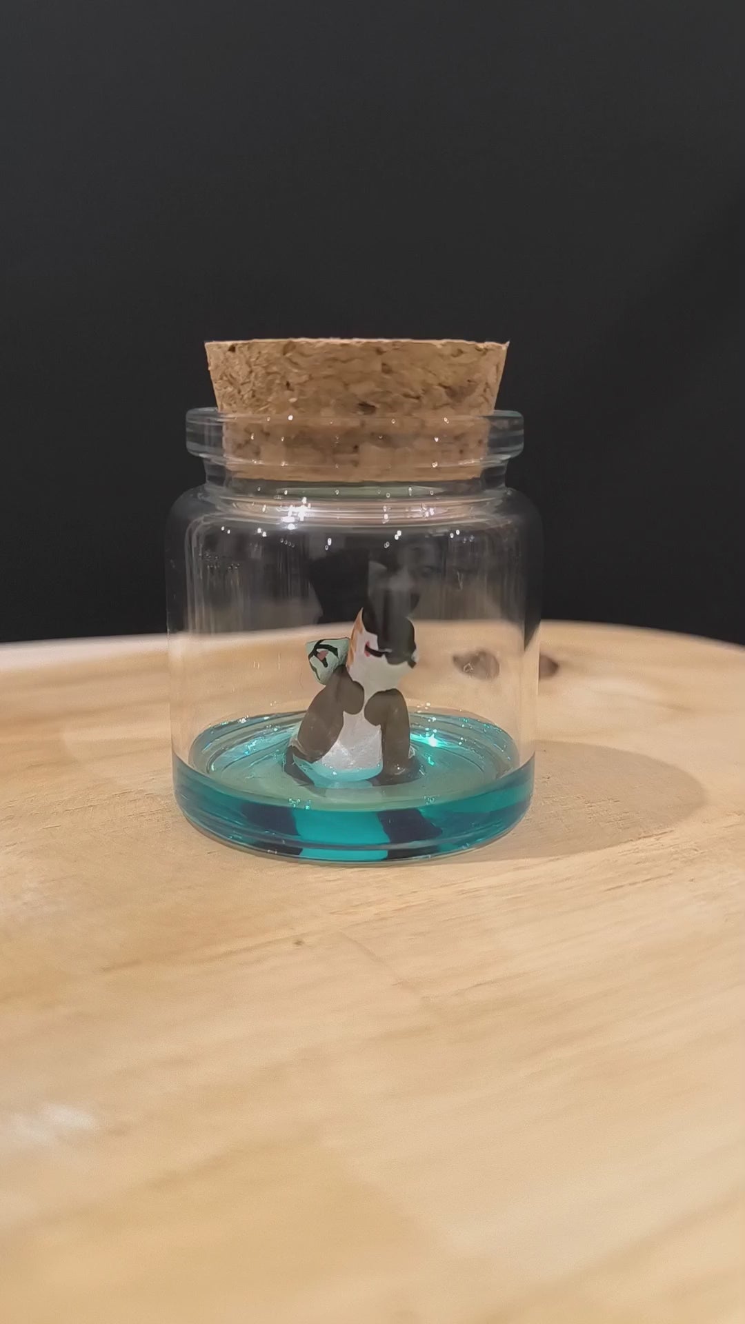 Matériaux: Argile naturelle sans cuisson (avec durcisseur),bois peinture à l'acrylique, résine. Flacon en verre.